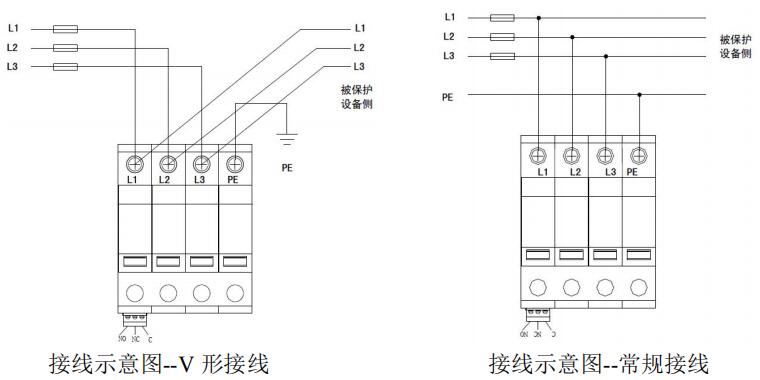 1模塊結(jié)構(gòu)浪涌保護(hù)器接線圖如安裝接線圖所示: