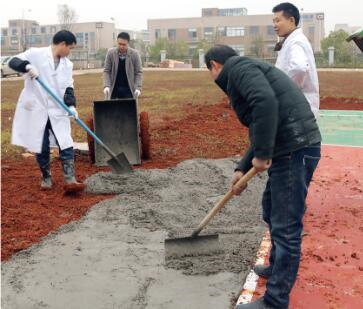 在12月24日當(dāng)天下午,為了提高籃球場使用的便捷性,對籃球場擴(kuò)建一條行人通道,由工會組織的籃球場修繕隊正式進(jìn)場了,十幾名員工,在寒風(fēng)中各司其職,有的攪拌石沙、有的添加水泥、有的運輸攪拌好的砂漿、有的平整水泥路面,雖然室外的溫度寒風(fēng)刺骨,但他們都干得熱火朝天,頭頂冒著熱氣。