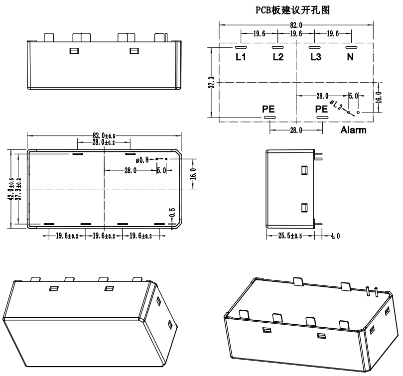 該電涌保護(hù)器內(nèi)部安全脫扣采用了140℃低溫焊錫,焊接請(qǐng)注意控制溫度,防止出現(xiàn)脫扣失效;PCB防護(hù)線路銅皮寬度要滿足通流容量的要求;電源線與告警線路爬電距離要滿足相關(guān)安規(guī)要求。