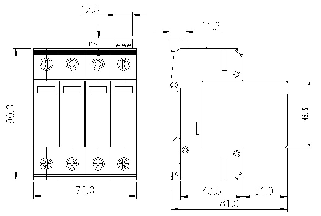 | 13 | 內(nèi)部保護(hù)裝置 | 防雷單元內(nèi)置熱脫扣裝置 |