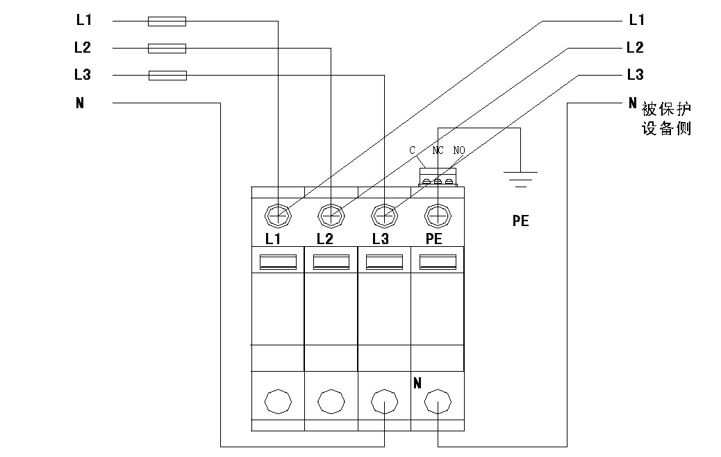 DXH06-FBS/3+1R80電涌保護(hù)器,適用于220/380Va.c.電壓系統(tǒng),配電系統(tǒng)以及終端設(shè)備的電涌保護(hù),應(yīng)安裝在防雷區(qū)0(LPZ0)和防雷區(qū) 1(LPZ1)的界面處。